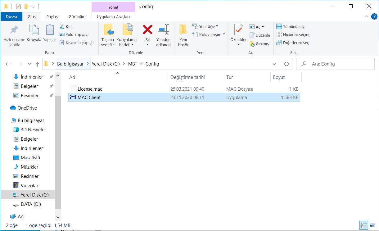MBT uygulamalarının dosyalarının indirilmesi için MAC Client programına