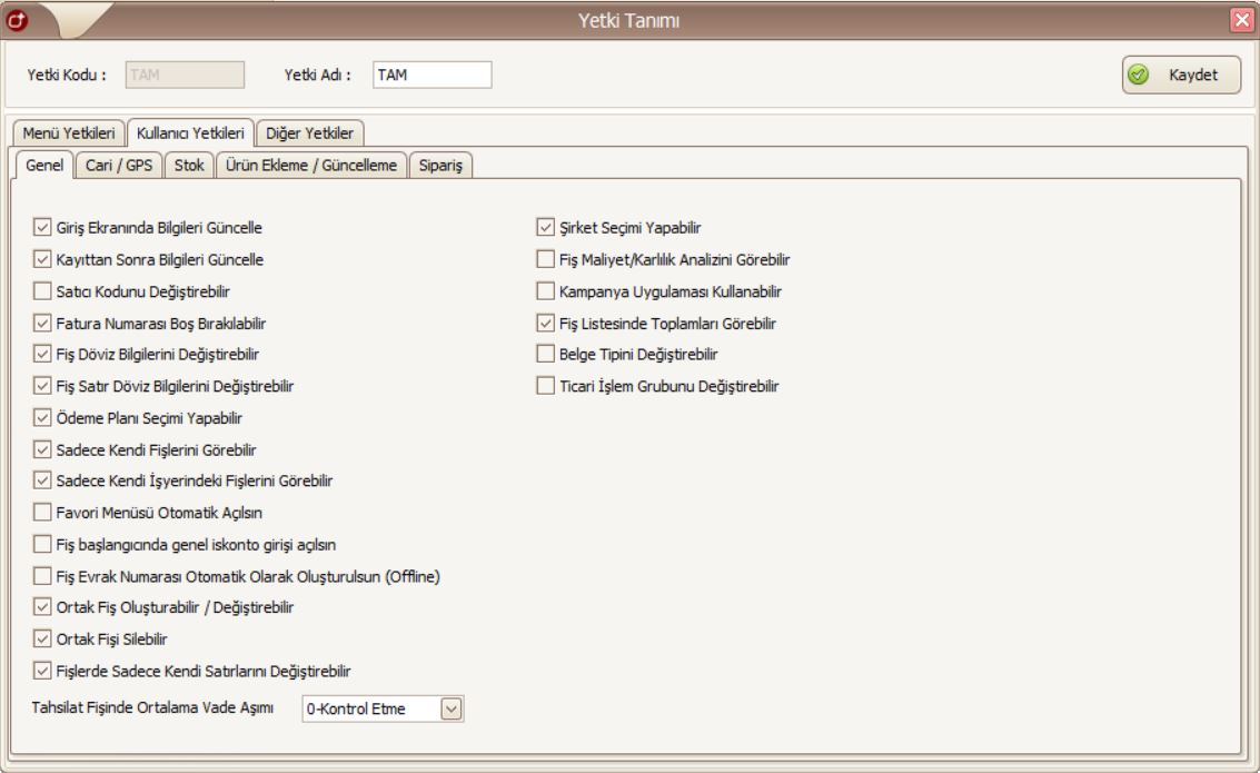Alış Fiyatlarını Görebilir: Kullanıcının bir ürüne ait alış fiyatlarını görüp göremeyeceğinin yetkisi bu parametre ile belirlenir.