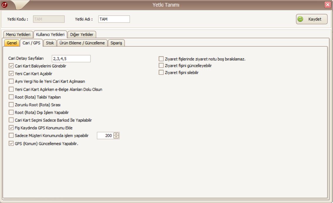 GPS (Konum) Güncellemesi Yapabilir: Kullanıcının, bir carinin sistemde kayıtlı olan konum verilerini değiştirme yetkisini değiştirip değiştirememe yetkisi bu parametre ile belirlenir.